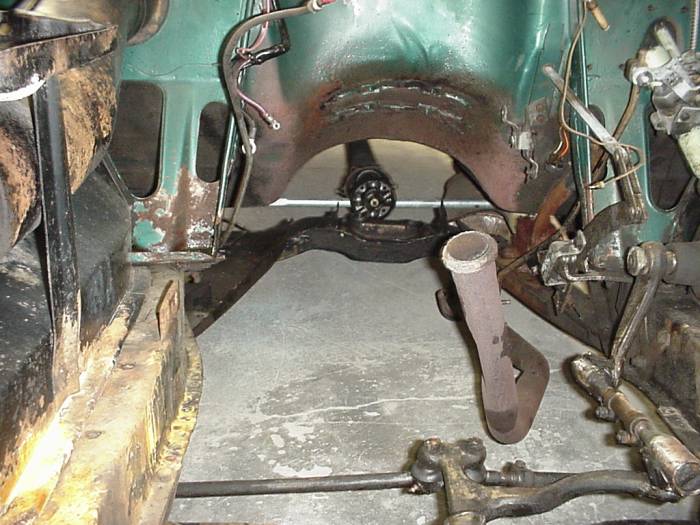 Notice rust and corrosion. Original paint color on firewall. |